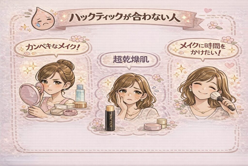 ハックティックは本当に便利な時短メイクアイテムですが、すべての人に合うというわけではありません。