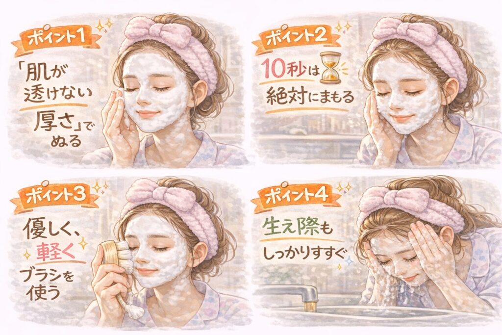 特に「10秒パック」と「専用ブラシ」の組み合わせは、一度体験すると普通の洗顔に戻れないという声が多いのも納得です。