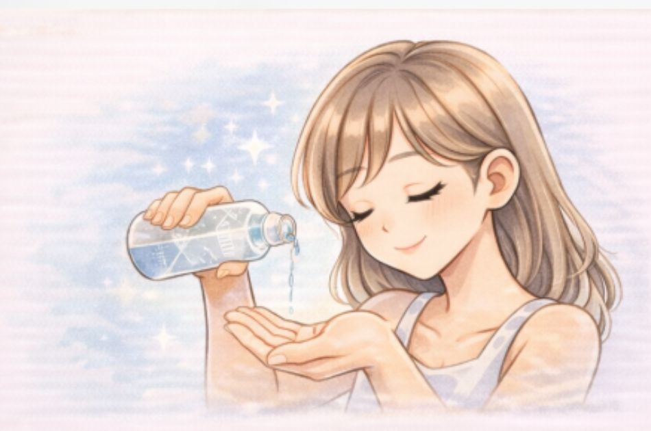 洗顔後に化粧水で肌に水分を与える