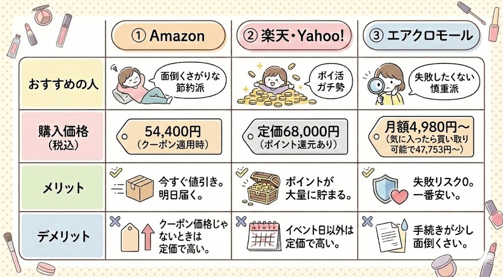 この記事では、あなたのタイプに合った「一番賢い買い方」を徹底比較しました。