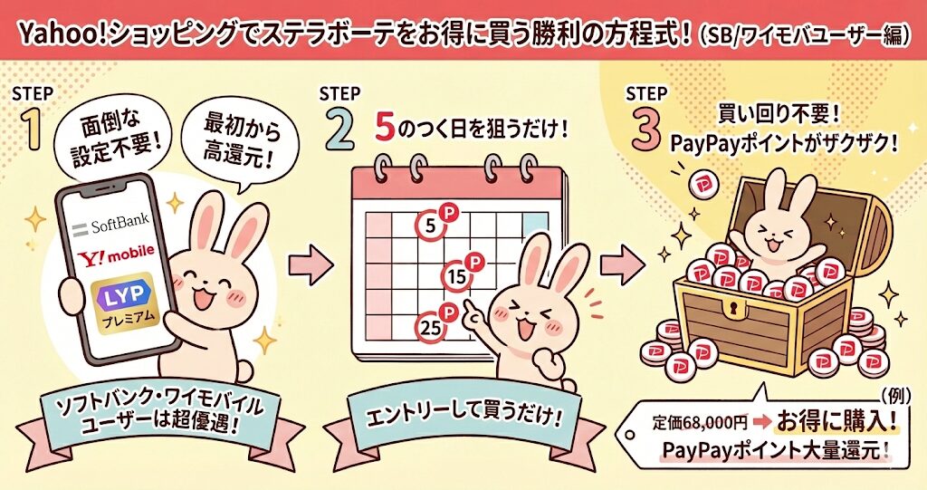 Yahoo!ショッピングには、以下の「3つの還元」を組み合わせることで、実質2万円近くお得になる最強ルートが存在します。